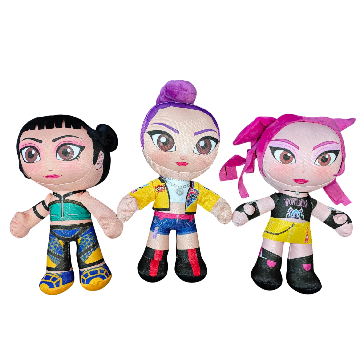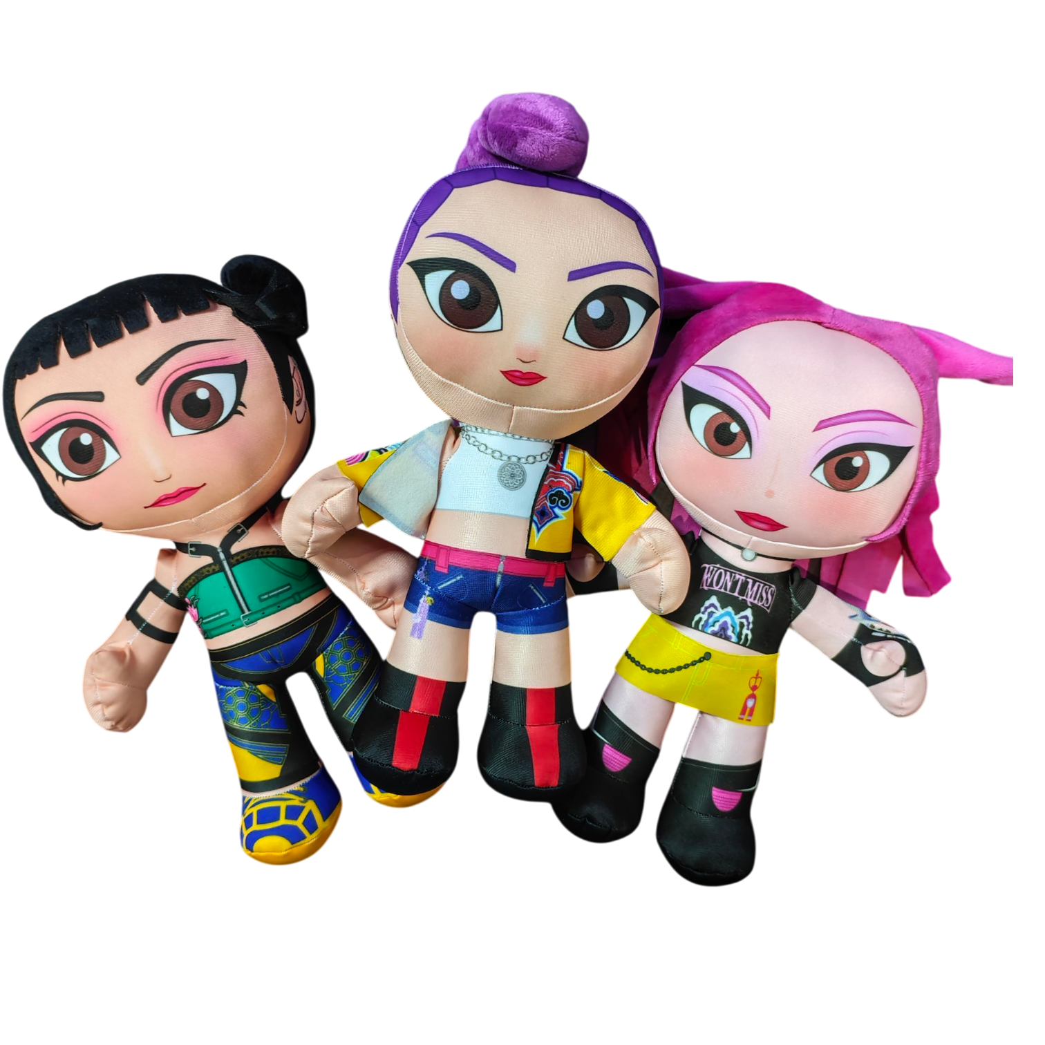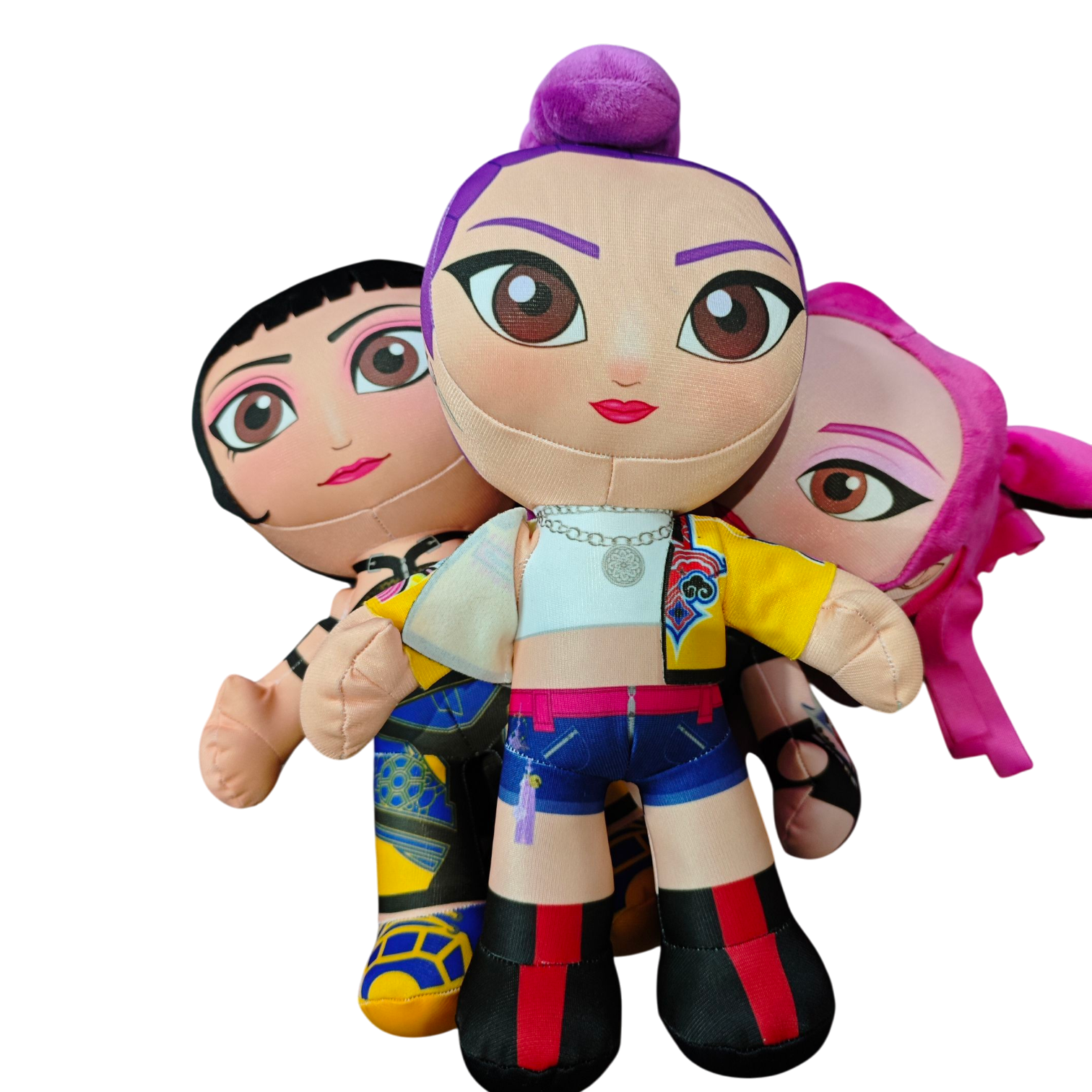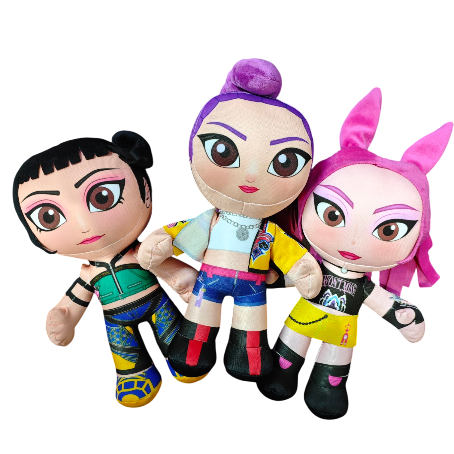 ¡Muestra tu apoyo a tu grupo de K-Pop favorito con estos peluches de alta calidad de las Guerreras Rumi, Mira y Zoey! Con un tamaño de 35 cm, son perfectos para abrazar y coleccionar. Hechos con materiales suaves y duraderos, ¡serán el regalo perfecto para cualquier fanático de las Guerreras!